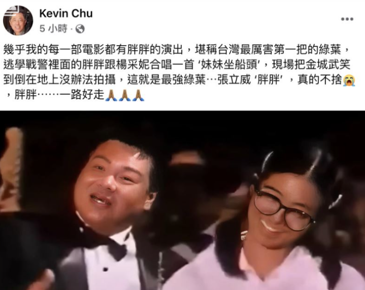 张立威是底层出身,中学毕业后再商店打工,期间因为搞笑天赋被发掘而踏入演艺圈,《乌龙院》导演朱延平曾发文悼念,张立威(胖胖)堪称台湾最牛逼第一把的绿叶,在《逃学战警》里面的胖胖跟杨采妮合唱一首《妹妹坐船头》,把金城武笑倒在地,没办法拍戏。